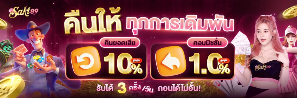 โปรโมชั่น Saki89 จัดเต็มทั้งโบนัสสมัครใหม่ โปรฝากรายวัน เครดิตฟรี และคืนยอดเสีย กดรับง่าย ไม่ง้อแอดมิน เพิ่มทุนให้แตกง่ายขึ้น เล่นมันส์กว่าเดิมทุกยูส